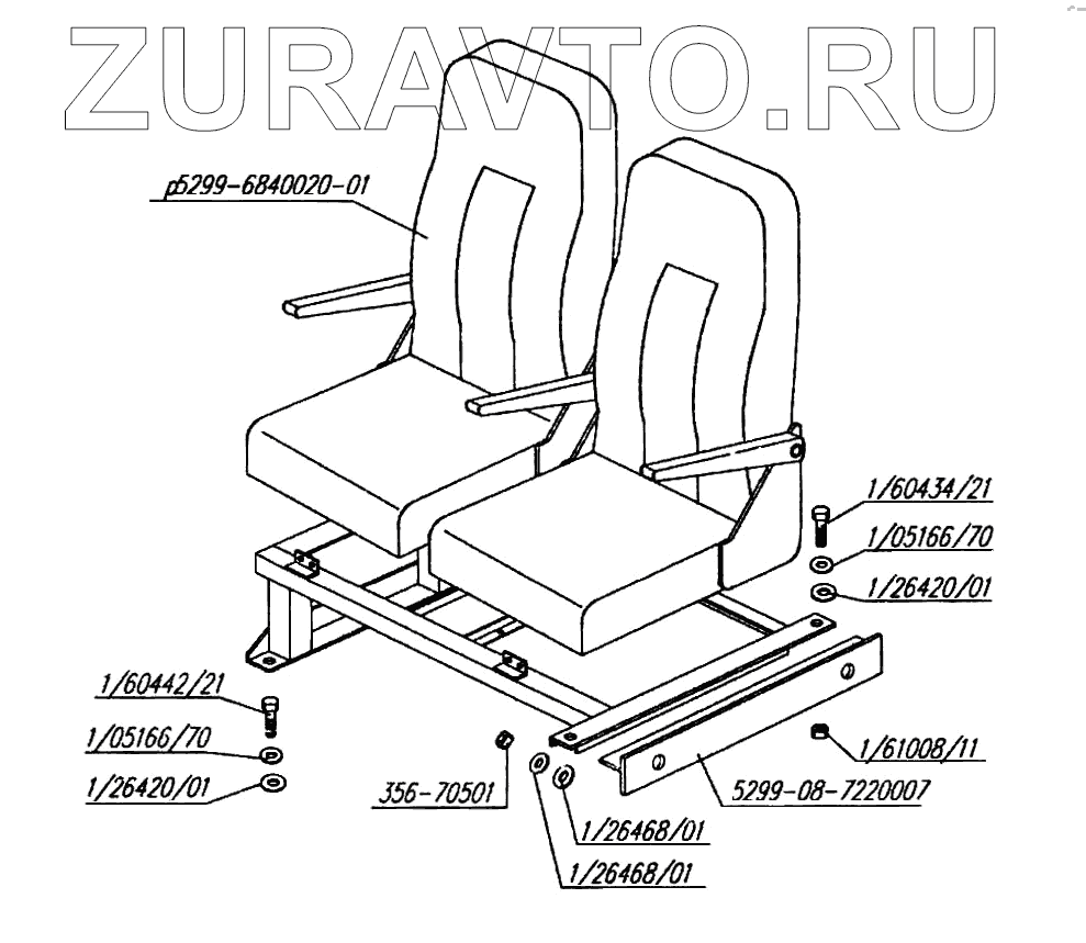 Р5299-6840020-01 Р5299-6840020-01 Сиденье салонное сдвоенное в сборе Нет в продаже