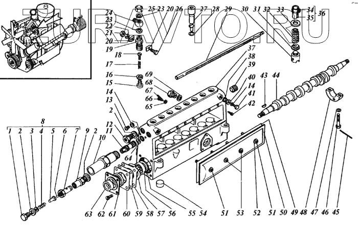 | 37 | 80.1111021-030 | Корпус топливного насоса | Нет в продаже |
