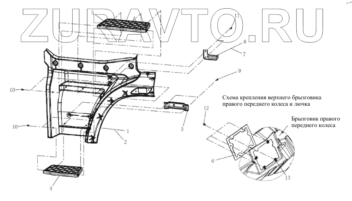 | 6 | 5103211-B45/C | Маленькая дверца верхнего брызговика | Нет в продаже |