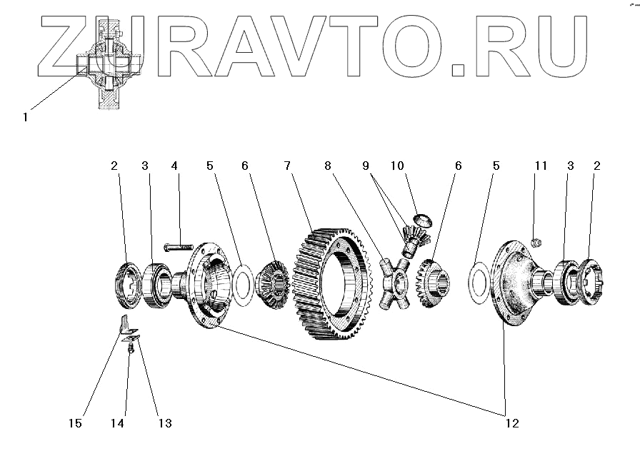 | 3 | 6-7515А | Подшипник роликовый конический дифференциала и вала ведущей шестерни главной передачи | Нет в продаже |