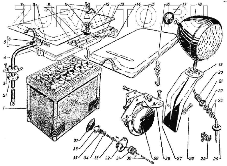 | 16 | 51-3703038-В | Стяжка крепления аккумуляторной батареи -задняя | Нет в продаже |