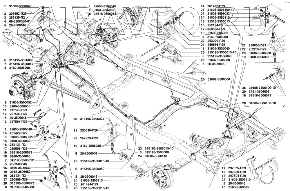 | 28 | 31602-3506088 | Трубка от регулятора тормозных сил к заднему гибкому шлангу | Нет в продаже |