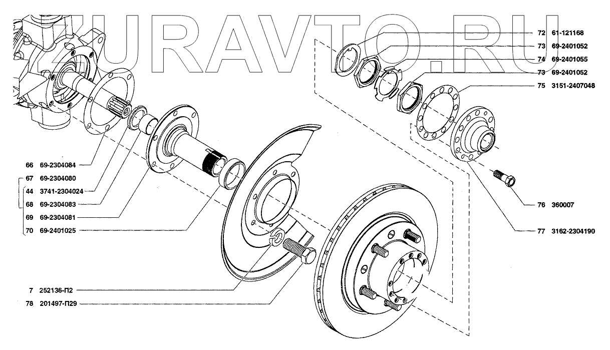 73 69-2401052 Гайка и контргайка подшипников ступицы переднего колеса Нет в продаже